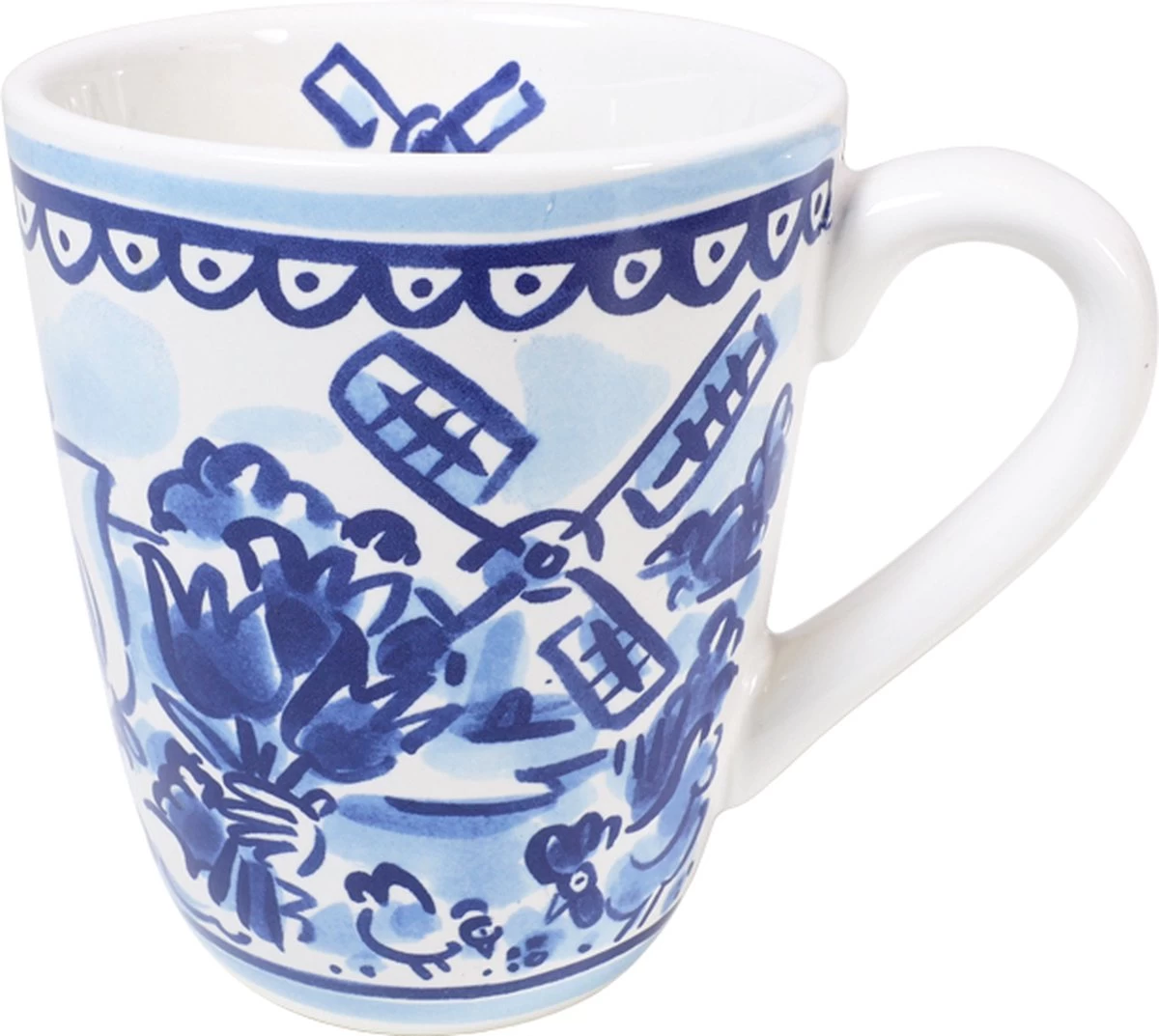 Met onder andere deze leuke beker met een typisch Nederlandse molen. Op de beker is een meisje geïllustreerd met een bos tulpen in haar handen. Op de achtergrond staat een molen afgebeeld. Deze beker is heerlijk voor een kop thee op de bank. Combineer de minimok met de andere 13 nieuwe Delfst Blond items en met de huidige collectie.
