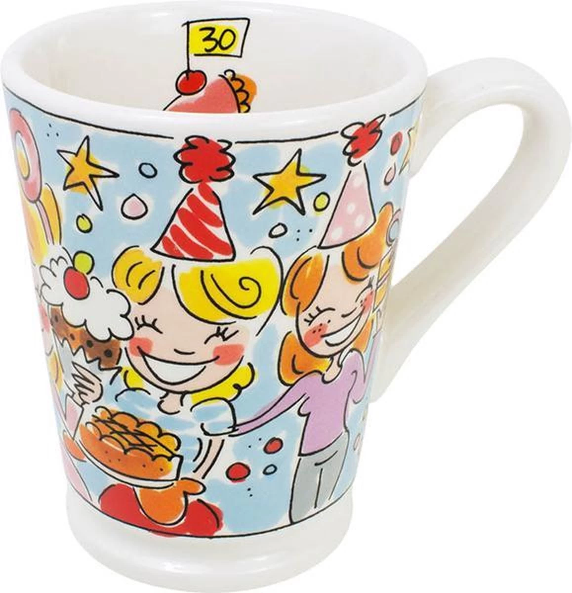 Word je binnenkort 30 of ken je iemand die binnenkort 30 wordt? Verras diegene dan met deze feestelijke Blond Amsterdam 30 beker! Op de beker staat de jarige met vriendinnen, taart en cadeaus afgebeeld. Aan de binnenkant van de beker is ook een stukje taart afgebeeld met daarin een vlaggetje ’30’. Deze beker zal zeker een leuke herinnering zijn aan de 30e verjaardag.