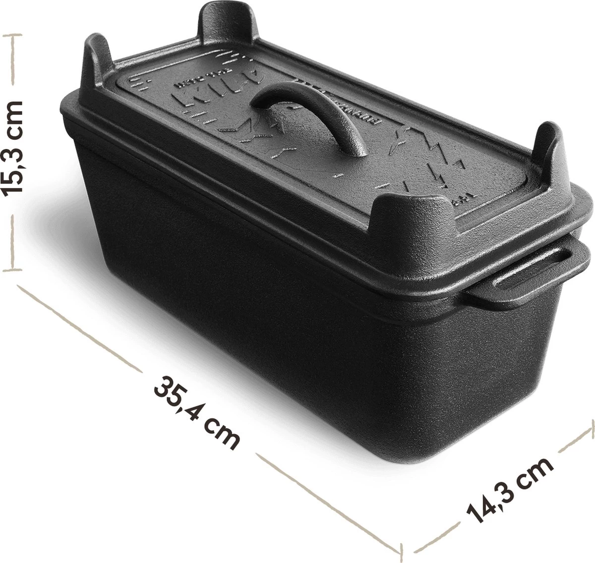 Onze broodpan is gemaakt van massief gietijzer. Dit materiaal houdt warmte goed vast en verdeelt deze gelijkmatig over de vorm, waardoor brood er met een mooie knapperige korst uitkomt en vlees perfect gaar wordt.