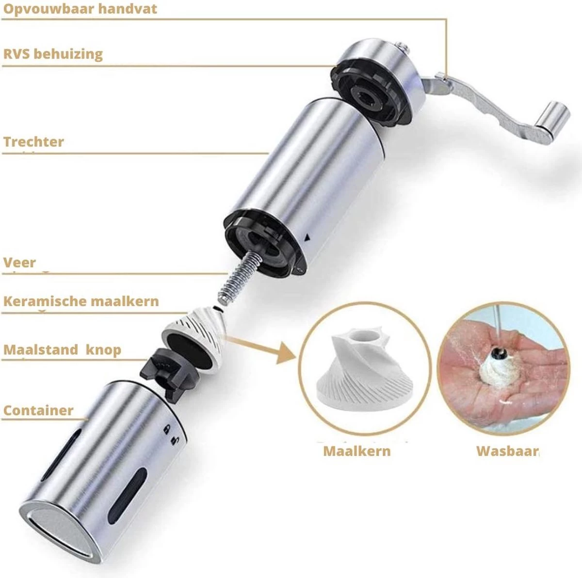 Comes In Handy – Koffiemolen Handmatig – Keramische Kern – Roestvrijstaal – Instelbare Maalgraad