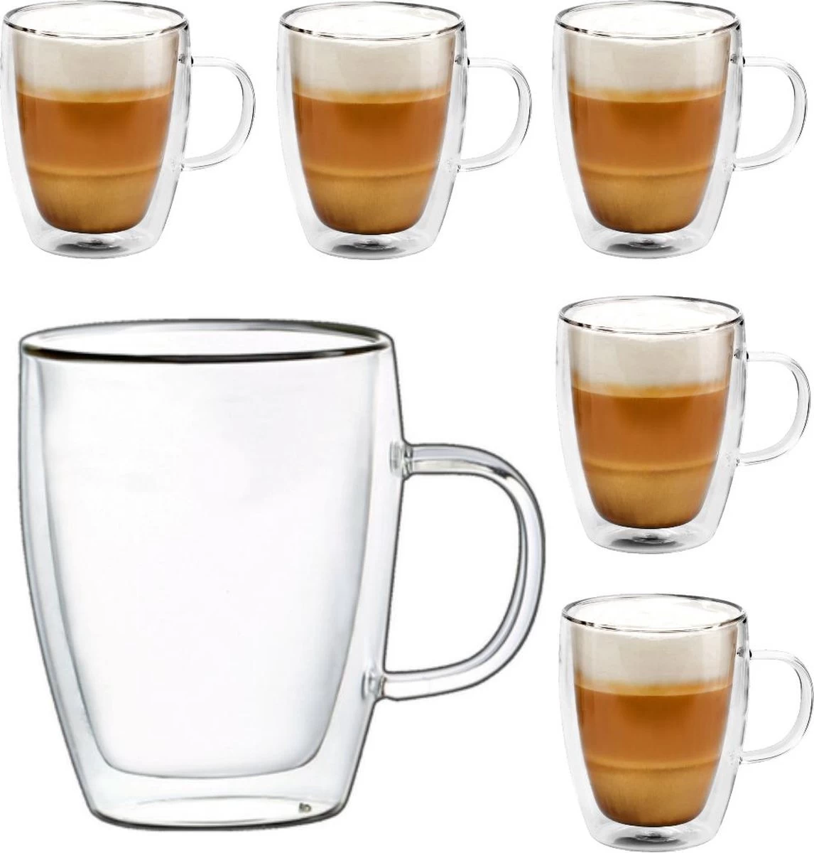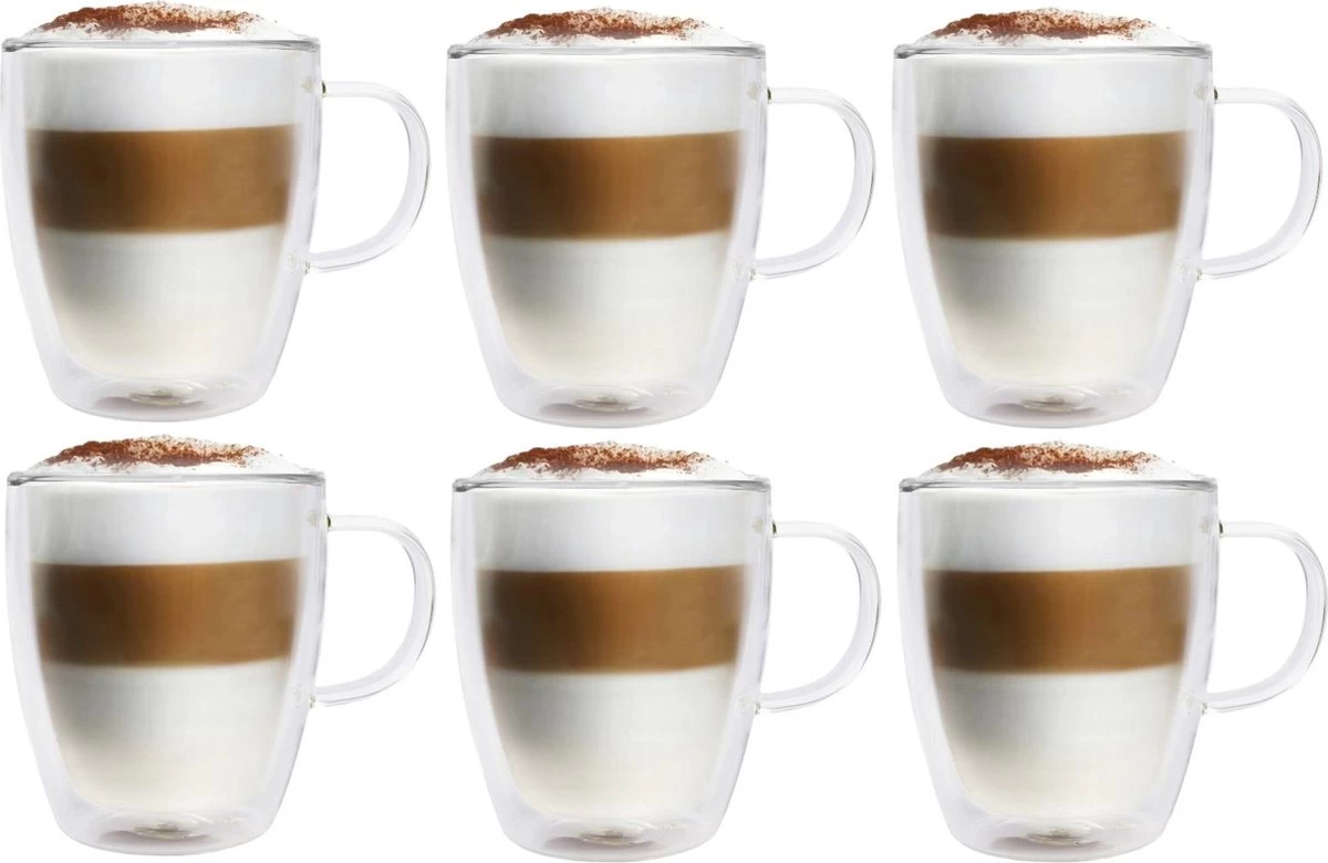 Set van 6x dubbelwandige glazen met oortje 350 ml.