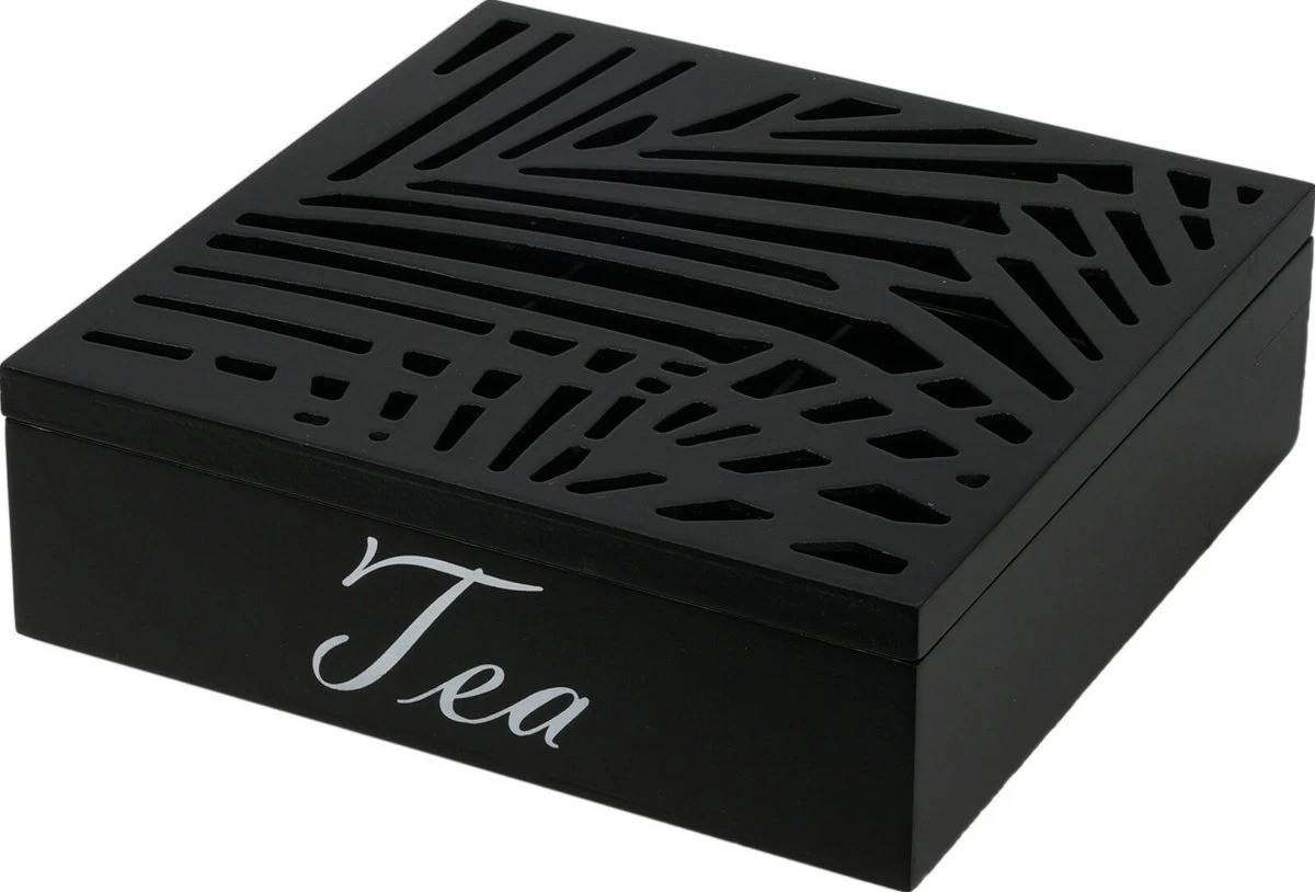 Excellent Houseware – Theedoos/theekist – 9 Vaks Hout – Zwart – 24x24cm