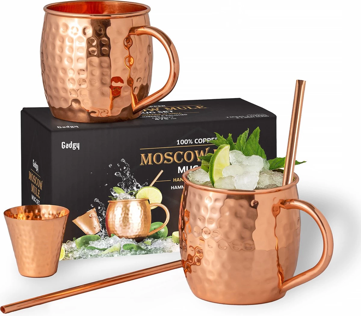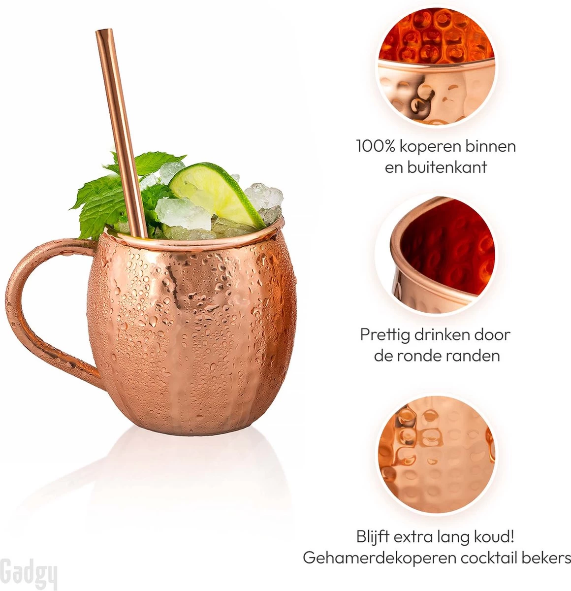 BLIJFT KOUD – Een echte Moscow Mule wordt geserveerd in een 100% koperen mok. Dit ziet er niet alleen fantastisch uit, maar reguleert ook de temperatuur beter waardoor je langer geniet van een heerlijke, koude cocktail. De ronde randen zorgen er voor dat de bekers prettig drinken.