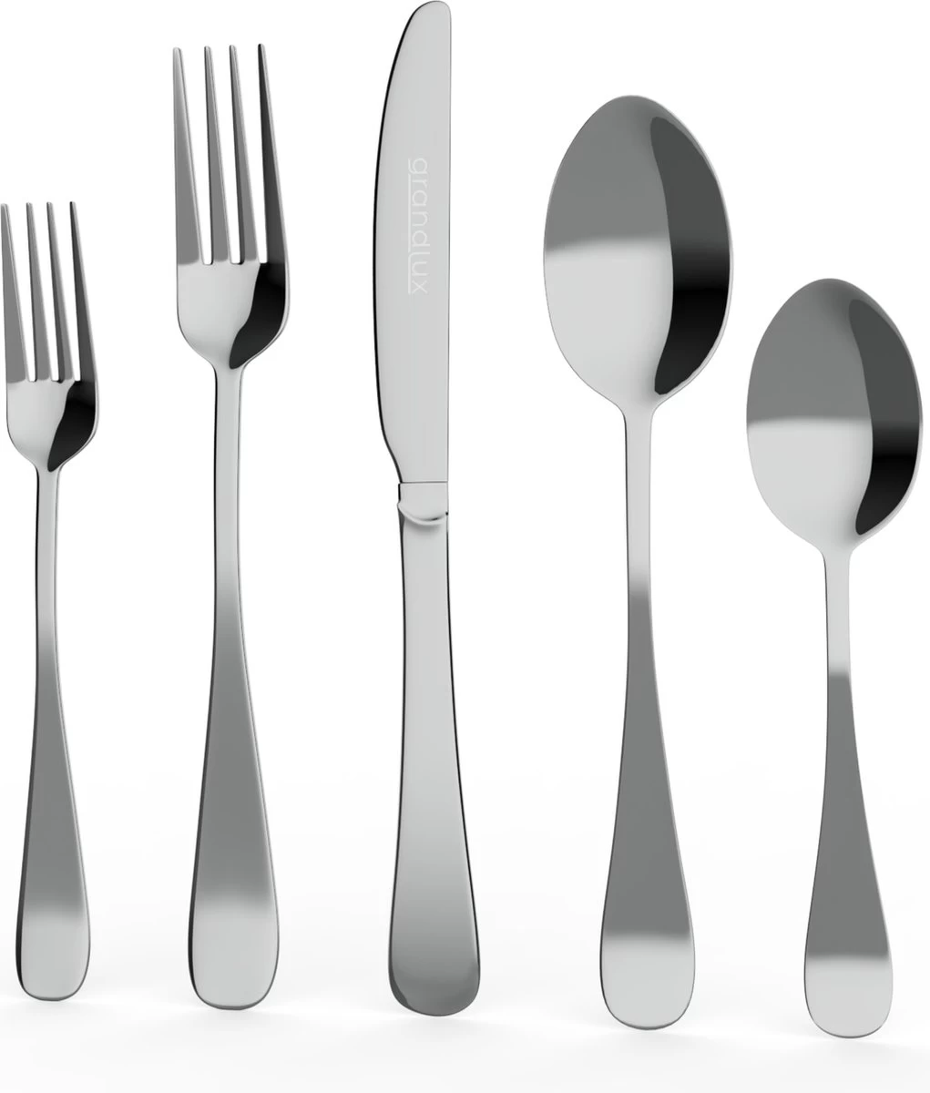 Opzoek naar een Stijlvol bestek set? Kies dan voor de Grandlux bestekset 6 persoons. De bestekset bestaat uit 30 stuks die minimalistische lijnen en een modern design combineren om een elegante touch aan jouw diner te geven. Het bestek is hoogwaardig afgewerkt en gemaakt van 18/0 chroomstaal, en voldoet aan strengere kwaliteits- en duurzaamheidseisen. De bestekset wordt geleverd in een mooie geschenkkoffer.