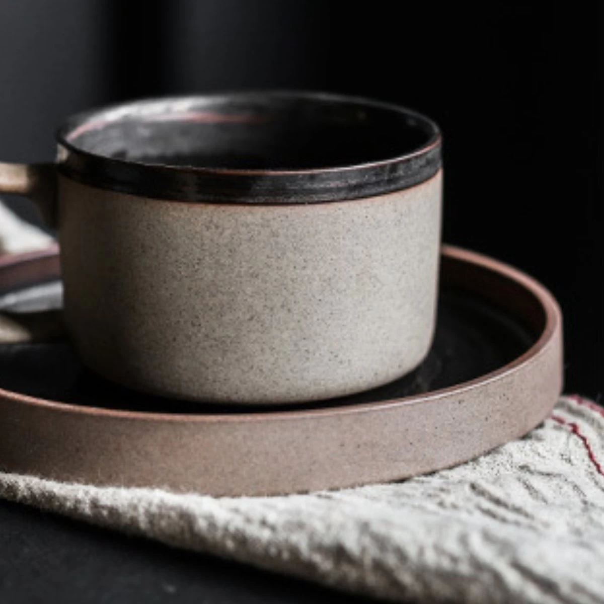 House Of Husk® Keramieke Kop En Schotel Set – Koffiekopjes – Theemokken – Koffiemokken – 250 Ml – Bruin Aardewerk