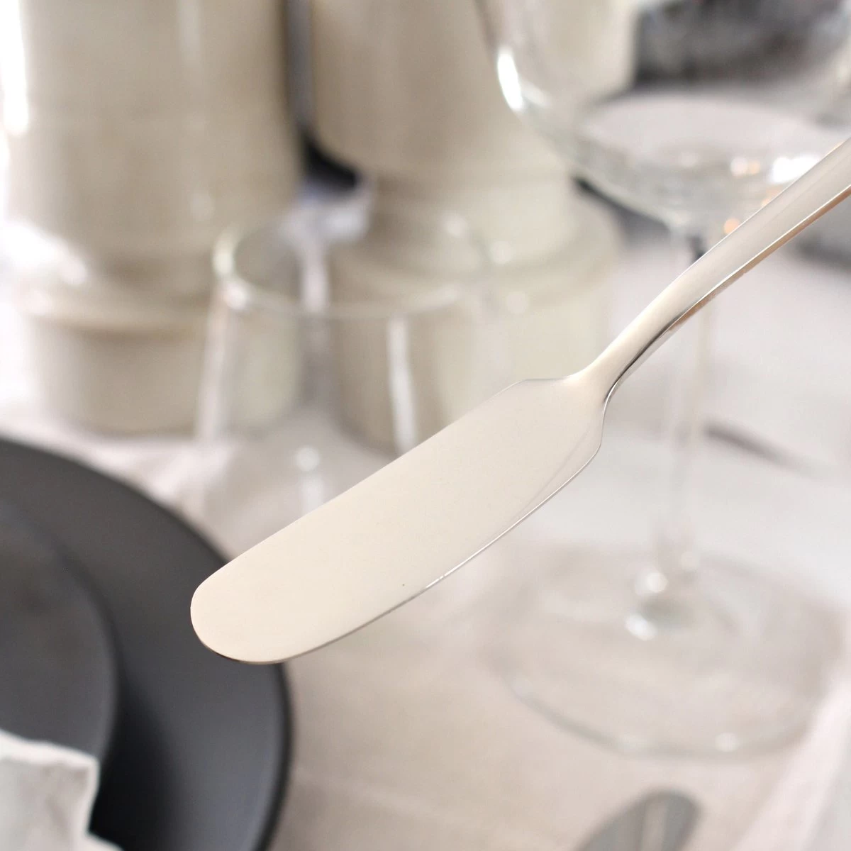 Traditioneel gezien gebruik je een botermes voor het smeren van je boterham. Het lemmet is afgerond zodat je eenvoudig een royale dot boter uit het kuipje schept. De bolle buik van het lemmet maakt het uitsmeren van de boter en spreads tot kinderspel. Aan een mooi gedekte tafelmag een goed botermes niet ontbreken.