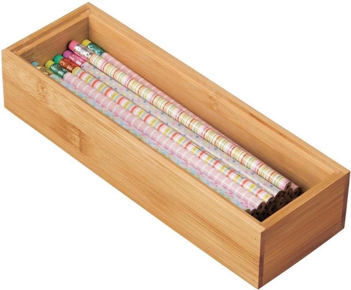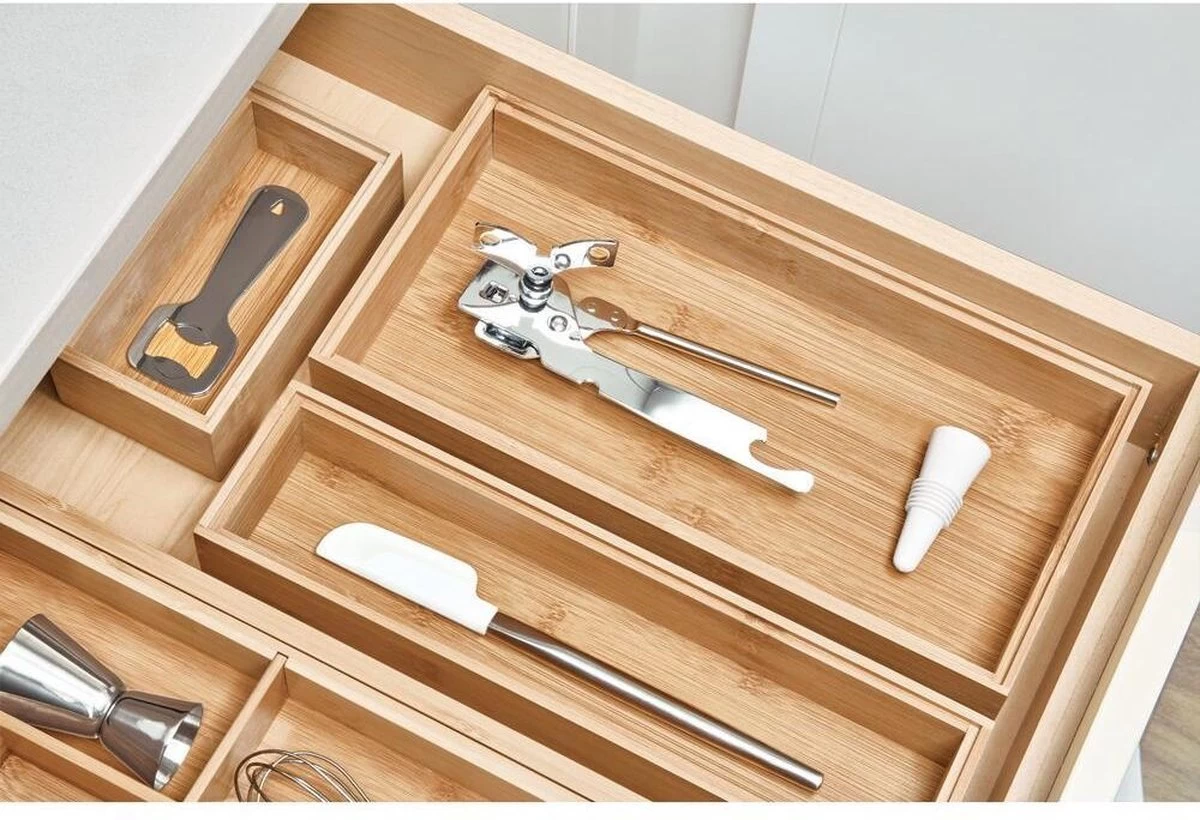 De bamboe bakjes voor in de lade zijn gemaakt van een mooie kwaliteit bamboe, waardoor ze lang mee gaan en een natuurlijke uitstraling geven. Je hebt de keuze uit vijf verschillende afmetingen, door ze juist te combineren creëer jij een lade indeling naar wens: