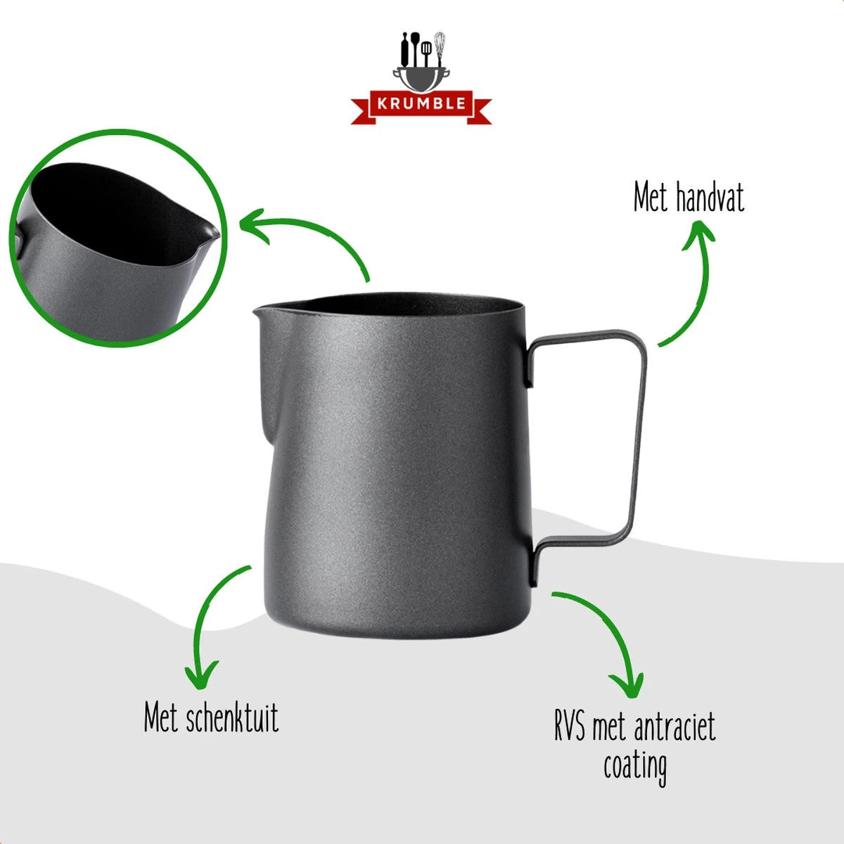 Krumble Melkkannetje 300ml / RVS Melkopschuimkan / Melkkan / Antraciet – Zwart
