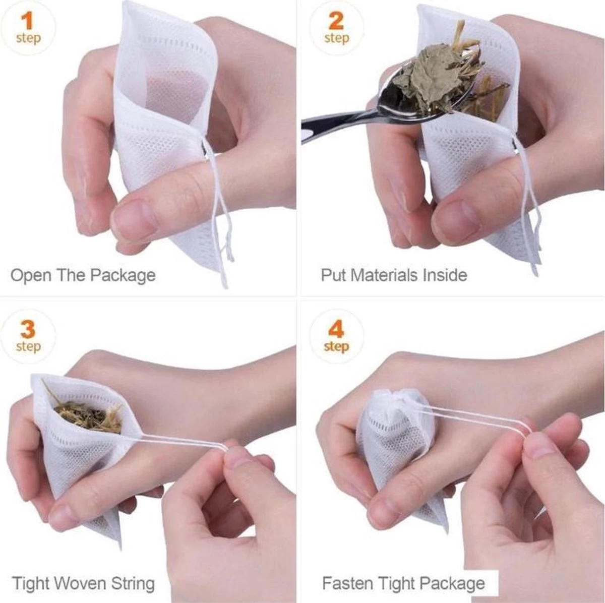 Met behulp van deze lege theezakjes kunt u uw eigen thee geheel naar wens samenstellen. De zakjes zijn te vullen met een mensel van 3-8g van thee, droge kruid of planten en daarmee geschikt voor het zetten van losse kopjes of hele theepotten. De zakjes zijn eenvoudig dicht te maken dankzij de handige touwtjes.