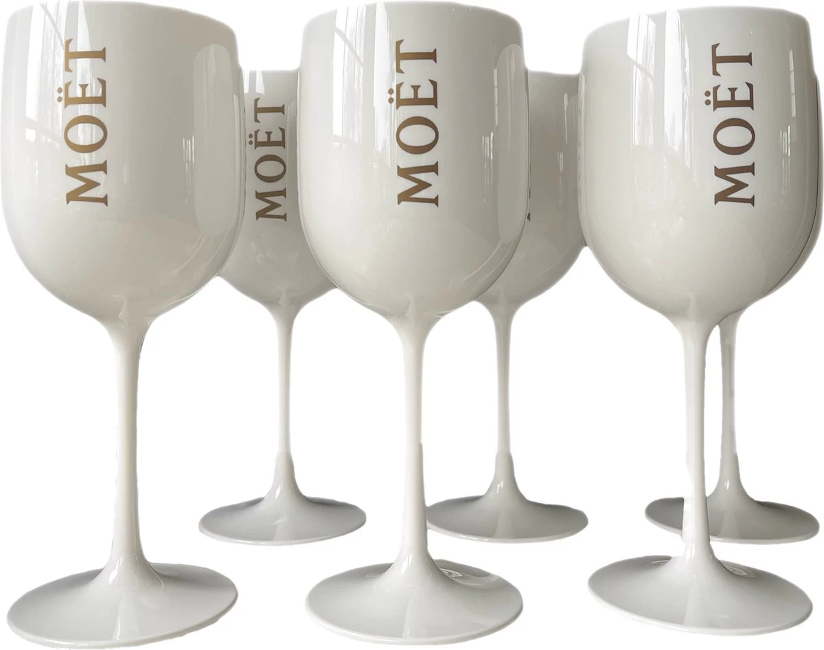 Het witte glas is stijlvol en herkenbaar. Het laat een unieke indruk achter. De glazen zijn van een speciaal kunststof en moeilijk breekbaar. Zo kunnen de Moët & Chandon glazen ook beter meegenomen worden op locatie. Zoals bijvoorbeeld tijdens het drinken van Moët & Chandon Ice op het strand, tijdens een speciale gelegenheid of de jaarwisseling. Deze glazen drinken heerlijk en zorgen voor de perfecte smaakbeleving.