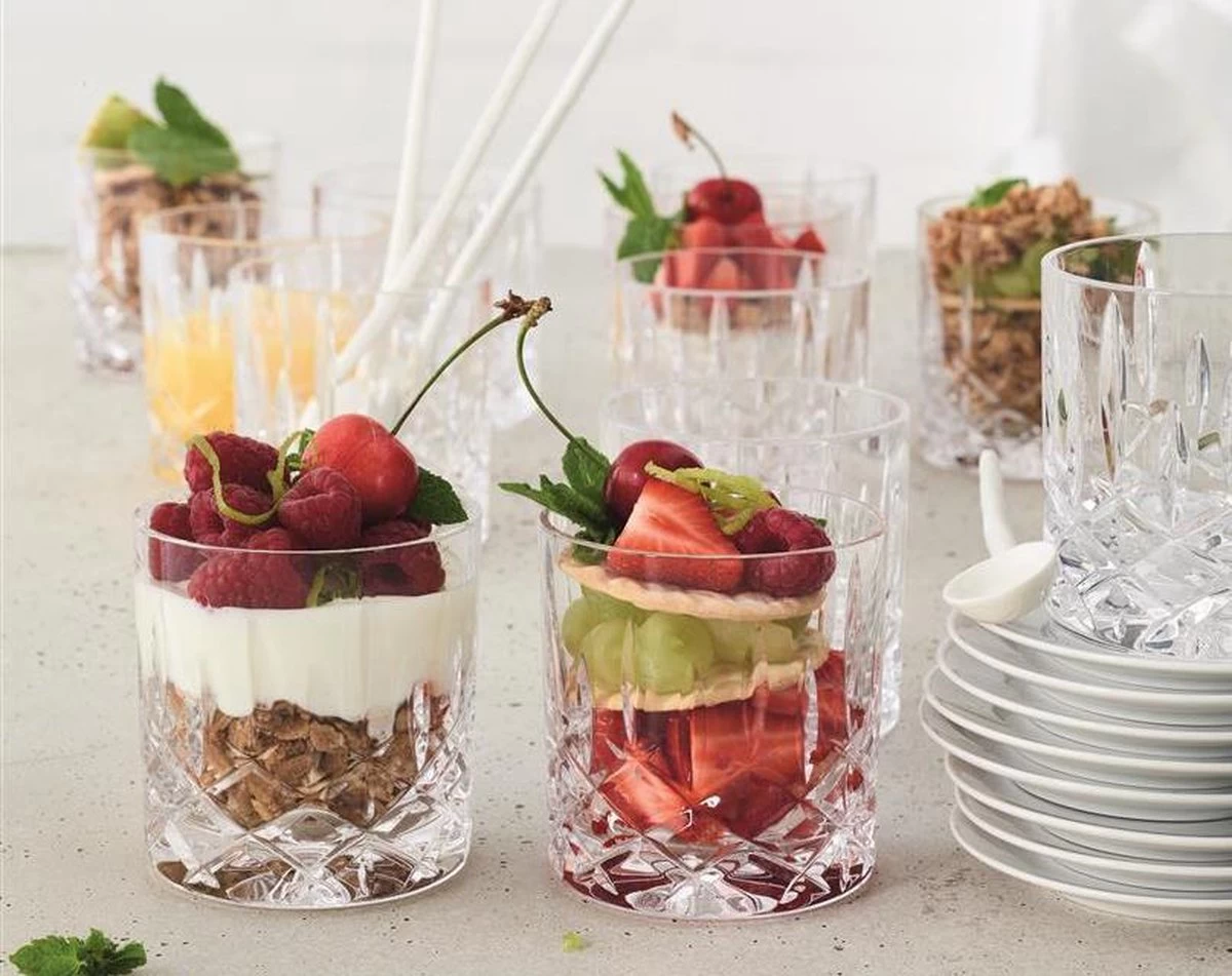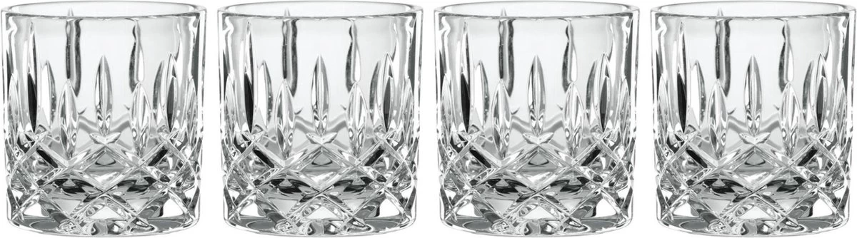 Dit single old fashioned glas uit de serie ‘Noblesse’ van Nachtmann is perfect voor whisky en old fashioned. Dit bijzonder luxe, prachtig geslepen glas trekt alle aandacht naar de voet. Hier zie je een helder ruitvormig patroon dat verder naar boven overgaat in langwerpige figuren. Eenmaal gevuld staat er pure luxe bij jou op tafel. Deze set bevat 4 single old fashioned glazen, ieder met een inhoud van 245 milliliter.