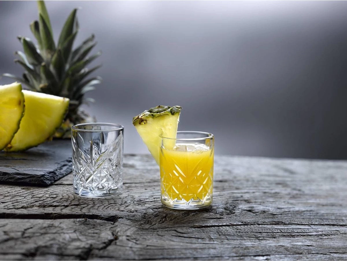 Deze opvallende borrelglazen uit de serie Timeless hebben een prachtig rechte vorm, waardoor ze fijn in de hand liggen. Met hun bijzondere hoekige glasbewerking maken zij iedere likeur tot een ware traktatie. De borrelglazen hebben een dikke bodem, wat ze een robuust en stoer karakter geeft. Daarnaast zijn deze glazen gemaakt van extreem sterk glas en kunnen na gebruik perfect gereinigd worden in de vaatwasmachine. Met deze glazen heb je voor ieder feestelijke gelegenheid de juiste glazen in huis. Deze set bestaat uit 12 borrelglazen met een inhoudsmaat van 6 cl.