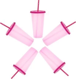 Herbruikbare Bekers Met Rietje En Deksel Van Plastic – Starbucks Design – Drinkbekers Met Rietje – Kleur Veranderende Beker – 5 Pack