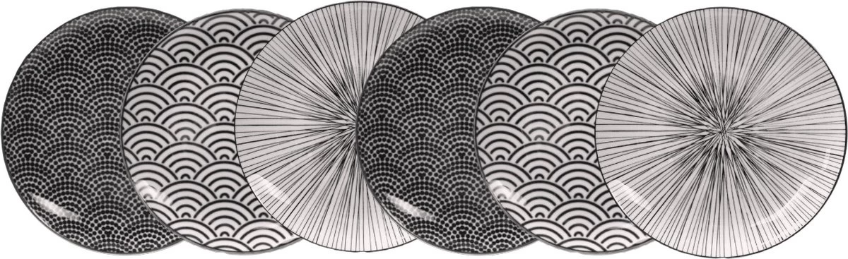 De set bestaat uit 6 bordjes met 3 verschillende prints. Ze zijn van hoogwaardig porselein en hebben een diameter van circa 16 cm. Gebruik ze voor het serveren van tapas of als gebaksbordjes